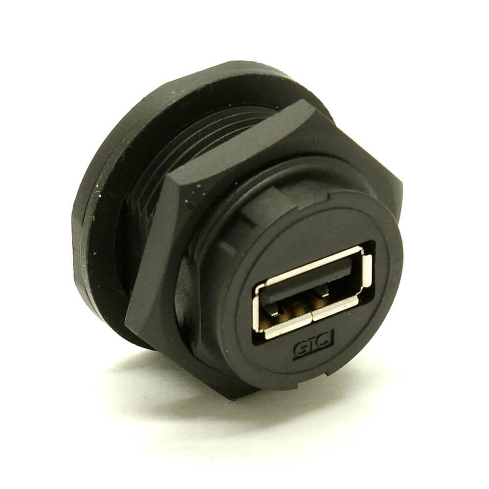 USB Waterproof Coupler Building a new product? Trying to find a solution that's waterproof? This panel connector is just what you need. It has a female mating connector on to solder tips, which makes it perfect for a solid production installation into your device. Our connectors are seal-able to an IP68 rating and ready to be installed into your case, controller, brief, tote, detonator, or anything else you might be installing it on.